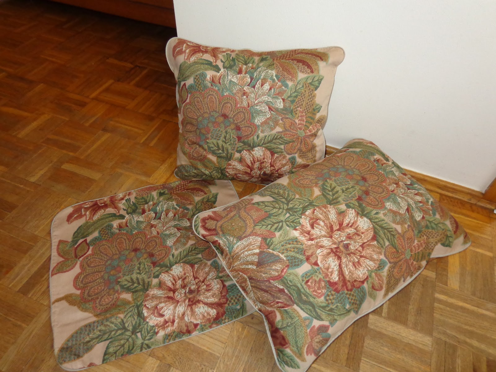 trzy poszewki z wypustką (wszystko z zapasów) na niedawno uszyte niewymiarowe poduszki wypełnione rewelacyjną kulką silikonowąm (kupiłam przy okazji promocji Dropsa w jednej z internetowych pasmanterii)