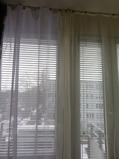 Ale to nie moje nieprzebrane zapasy skłoniły mnie, by zajrzeć do walizki z maszyną, nie, to moje liczące sobie 12 lat firanki, które już koniecznie trzeba było wymienić. Widać to było wyraźnie, kiedy powiesiłam nową obok starej.